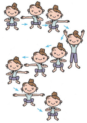 - お腹をゆっくり回し、背骨をやわらかく伸ばします。
